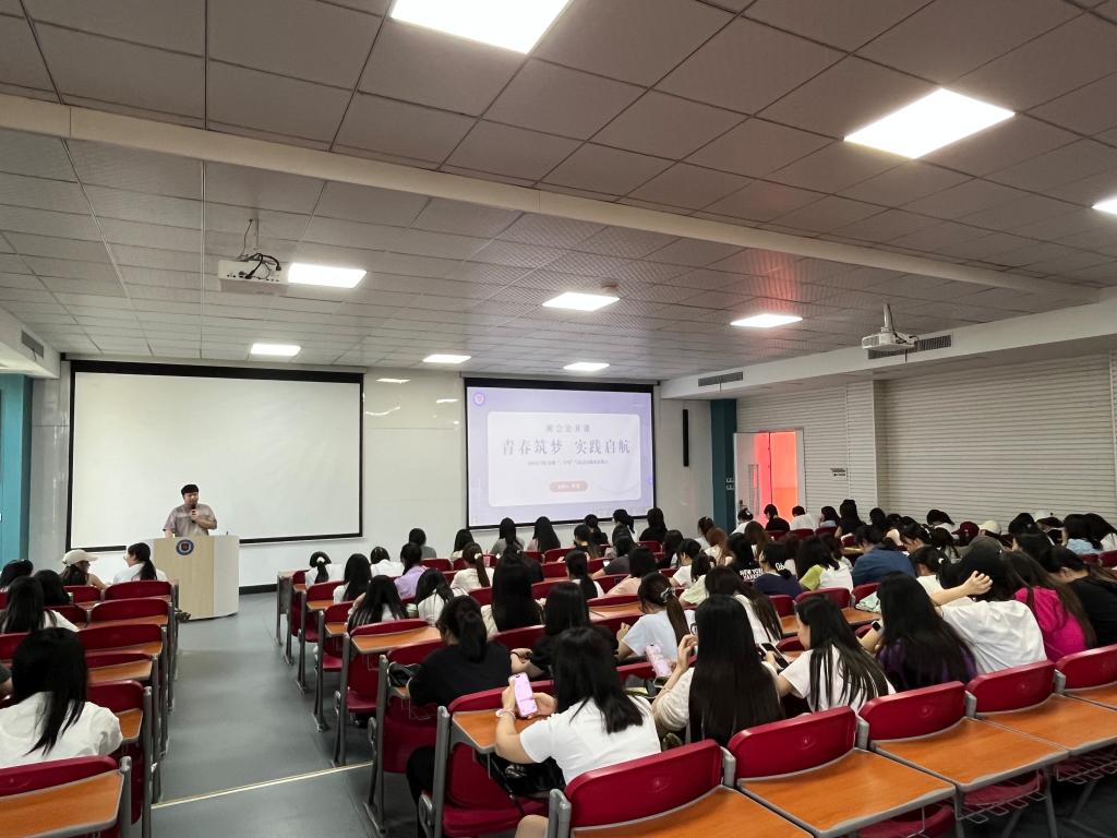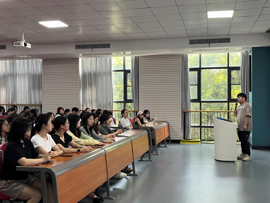 课上,尹旋通过图文并茂的展示,详细介绍了近几年公司在暑期“三下乡”等社会实践活动中的亮眼表现。在乡村支教活动中,外院学子化身“小老师”,用多元化的趣味课堂为偏远地区留守儿童打开世界之窗;社区实践中,同学们发挥语言专长,开展外语文化科普、廉洁文化活动,丰富居民精神文化生活;参观红色教育基地时,同学们追寻革命足迹,传承红色精神;非遗文化体验之旅中,亲身体验了瓷板画的制作过程。公司实践团队荣获市级表彰,众多学子在实践中收获成长。