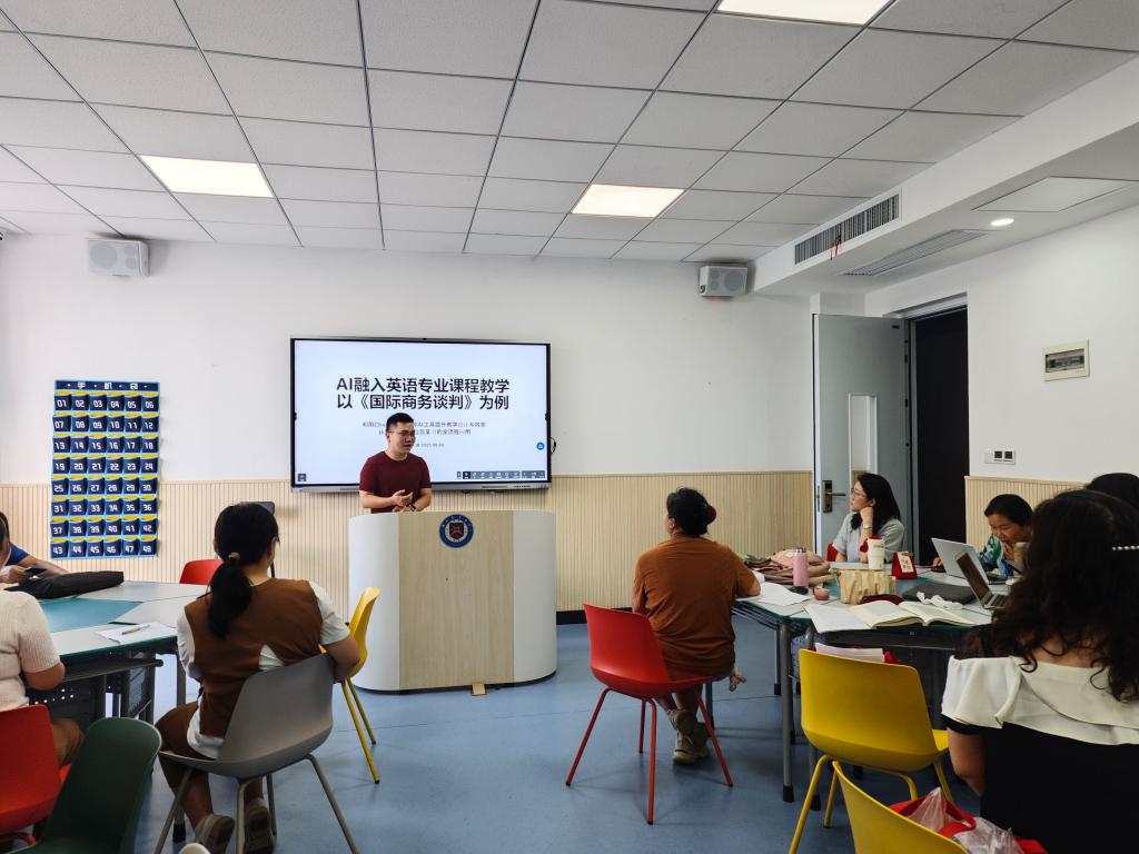 为进一步推动人工智能技术在英语专业教学中的融合应用,提升教师的教学设计能力和课堂教学效率,2025年6月4日下午,球王会英语综合教研室在2-705教室成功举办了第二期“AI融合智慧英语教学”研讨会。本次研讨会由段净洲老师主讲。