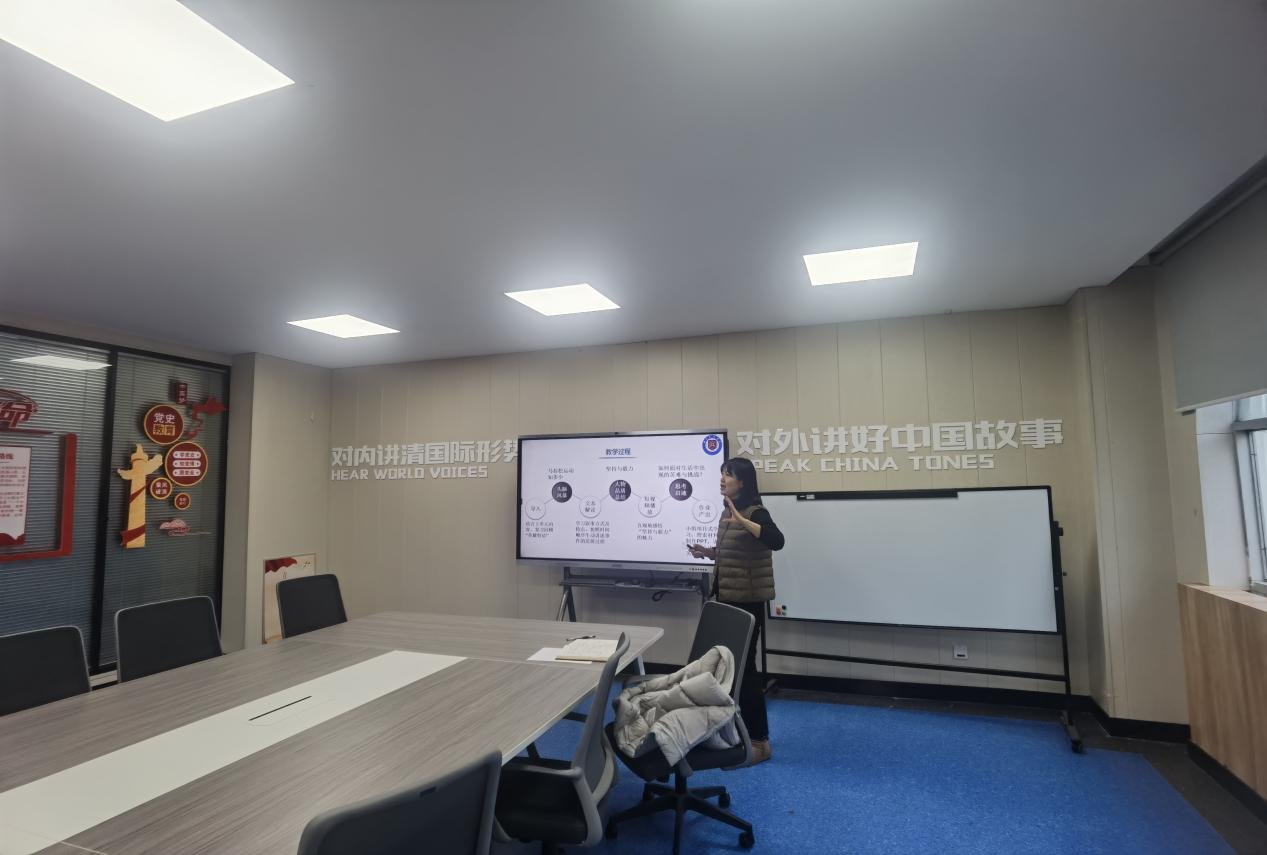 陈惠君、沈蓉蓉、吴爽、黄佳卉、朱祎五位参赛老师分别以“英语记叙文的写作”、“英语畅谈中国文化”、“日语视听盛宴与文化大餐”、“英语演讲与辩论”及“英语视听说”等为主题,严格按照说课5分钟,试讲10分钟的规则进行了展示。参赛老师准备充分,课堂展示声情并茂、各具风格,得到了评委老师的一致赞扬。