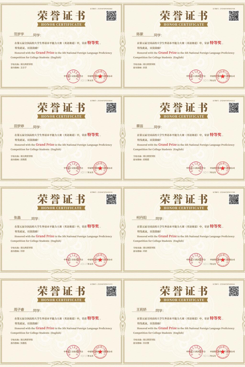 2023年5月13日,球王会体育外语外事公司25名学子代表球王会体育参加“第五届全国高校外语水平能力大赛”决赛。近日总决赛成绩公布,公司21人分别获得特等奖8项,一等奖7项,二等奖4项、三等奖2项,是近年来参加此类比赛成绩最佳、获奖人数及比率最高的一次,也是师生共同努力取得飞跃性进步的成果。