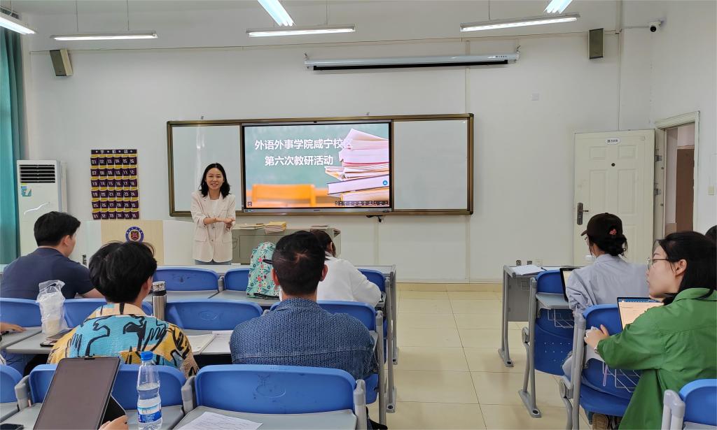 以研促教,教研相长。外语外事公司咸宁校区开展了一系列教研活动,每一期都安排教师从教学内容、教学方法、教学效果、课程思政等内容进行经验分享,更好地发挥了优秀教师的引领和示范作用,同时也为公司教师搭建了一个相互学习、交流,不断探索、反思的平台,帮助大家博采众长,努力提升教学水平。