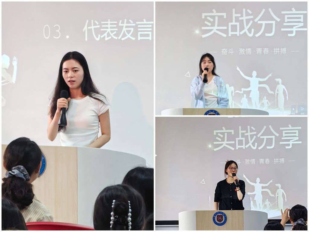 2021级参加四级考试并取得好成绩的员工代表们分享了她们的实战经验,从专四考试的各种题型解题方法到词汇、语法,备考技巧和考试心得等各个方面,结合自身的实际经验,分享了满满的干货,同学们受益匪浅,深受启发,增强了学习信心和动力。