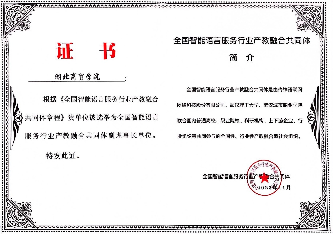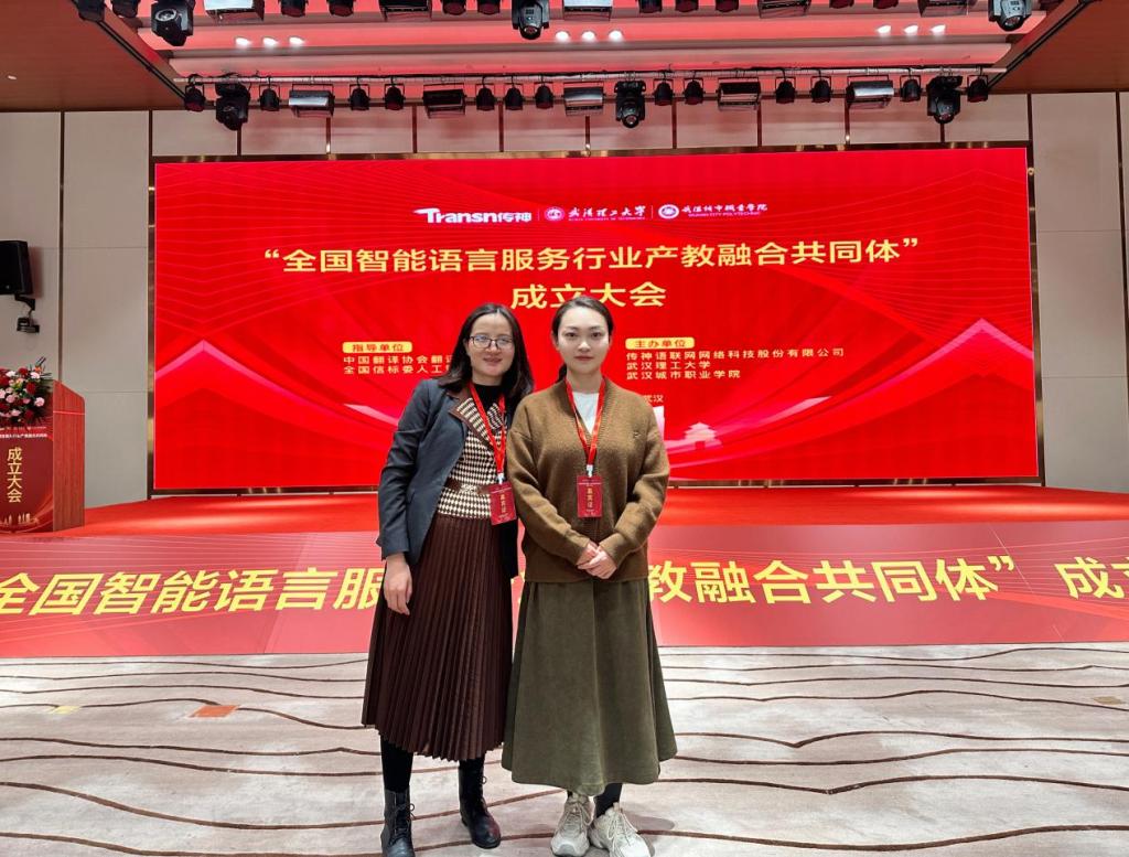 11月23日,全国智能语言服务行业产教融合共同体成立大会在武汉东湖高新区未来科技城举行。体育官网副经理武艳霞与应用翻译教研室教师张娟受邀参加此次成立大会。