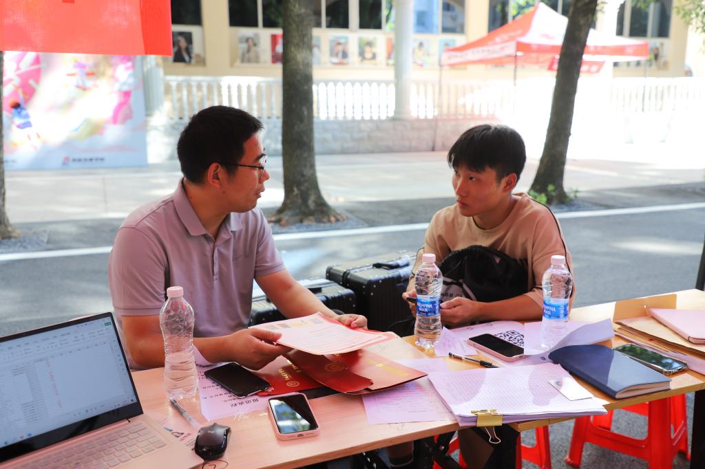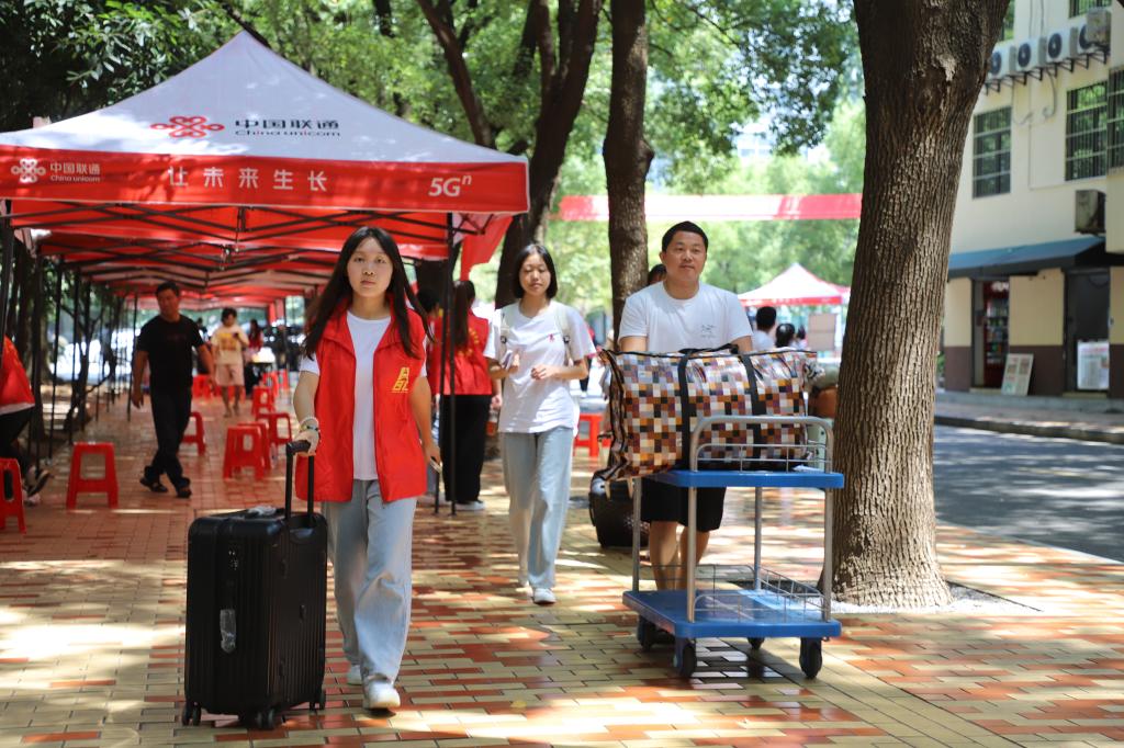 一张张热情的笑脸、一句句亲切的问候、一项项贴心的服务……迎新工作者们都在自己的工作岗位上,用最热情最质朴的方式欢迎每一个新成员的到来。各公司各专业的报到点、行李存放点、医疗卫生站点等为新生提供“一站式”贴心服务;清晰醒目的道路指引牌、亲切和蔼的老师和辅导员以及出现在迎新现场各个地方了解情况的校领导,都让初入广青校园的新生倍感踏实和温暖;校园安保人员头顶烈日、手持对讲机的尽职尽责,换来迎新日中校园内的热闹有序……这一切都让新生和家长感受到公司的温情和真诚。