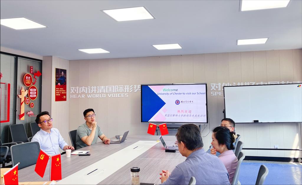 2023年5月24日,英国切斯特大学代表团来公司进行交流访问,商讨推进国两校国际项目合作。外语外事公司专业带头人杨夷平、经理王谷子、副经理余昊接待了代表团成员。