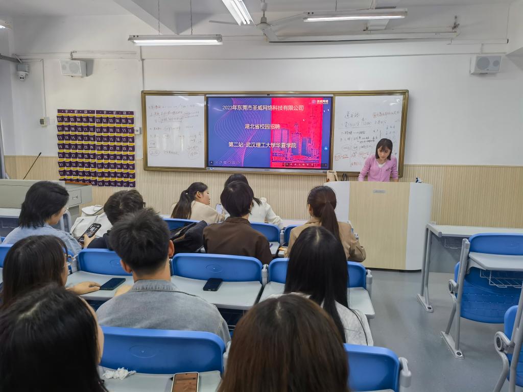 为进一步帮助2024届毕业生就业创业,外语外事公司于2023年10月21日在武汉校区综合楼B-202教室开展东莞圣威网络科技有限公司宣讲会,公司就业专员樊军鹏负责并参加本次宣讲会。