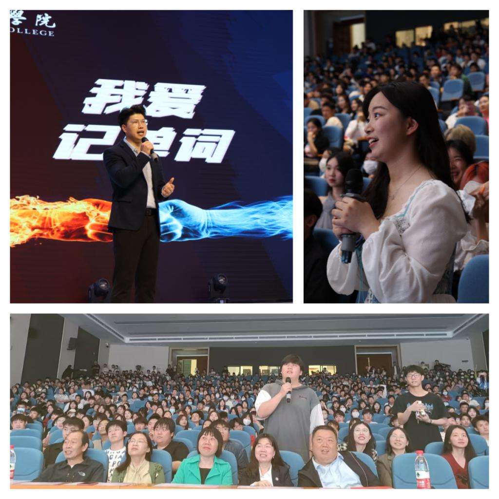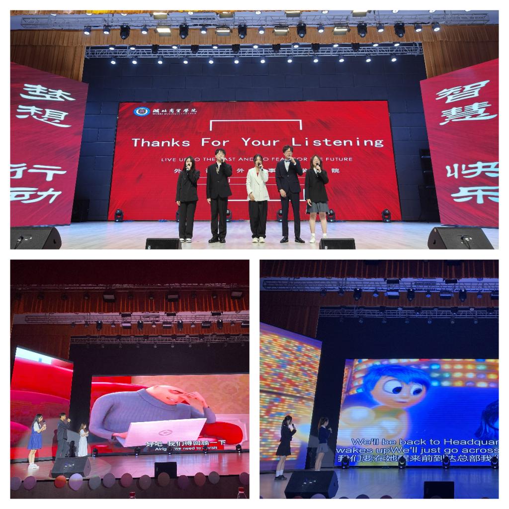 外语配音节目则以英、日两种语言惟妙惟肖地呈现了《神偷奶爸》、《甄嬛传》等经典影视佳作,观众们仿佛身临其境。英文歌曲串烧节目则以英、意两种语言呈现听觉盛宴。为激发大家对英语的学习兴趣,张鹏彪老师与现场观众互动记单词,同学们热情响应,跃跃欲试。黄晓琪等五位同学衣着白色衬衫,带来饱含深情的英文朗诵《青春》,诗歌中表现出对生命的无限热忱,对希望的执着渴求深深打动了现场观众。演出最后,青春洋溢、身材高挑的湖商学子为观众们带来了动感的时装T台秀,整场英文盛宴在热烈奔放的旋律中圆满结束。