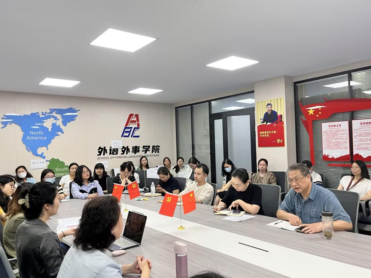 姚范美提出高校课堂高阶性前沿评价维度,主张教师着力教学设计环节,呈现思政元素有机融合、师生生生互动活跃、员工收获显著的创新型产出导向外语授课课堂。高度肯定公司教师课堂准备、组织、授课和管理工作,并以余昊、邓妍和刘一方老师课堂为例,说明如何实践外语高效课堂。针对课堂教学不足之处,姚范美鼓励教师学习先进教育理念与模式,保持教学热情,利用课堂记录、前测后测等教学环节有效提高课程效度。随后,公司教师向姚范美积极提问,展开讨论。