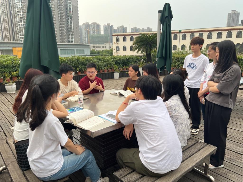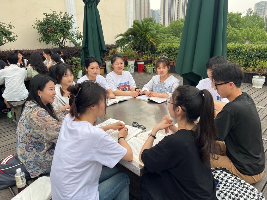 为了提升员工英语口语交流能力,外语外事公司于6月4日下午6点在图书馆五楼小花园举办了英语角活动。公司四位海归年轻教师参与活动。