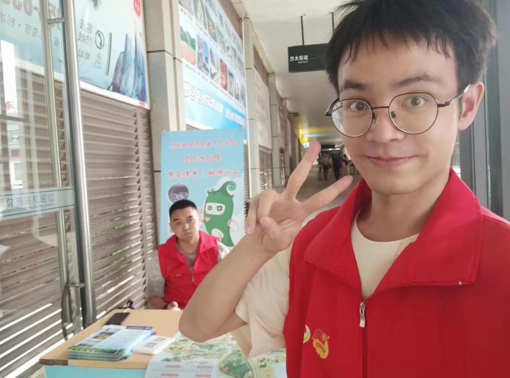 在这次的志愿服务活动中,吴龙潇竭诚为每一位有需要的游客提供热切的服务,手绘旅游地图所描绘的每一条线路,都留着心中暖流淌过的痕迹;旅游资源信息手册所记录的每一页文字,都反阅着眼里坚毅闪烁的目光。