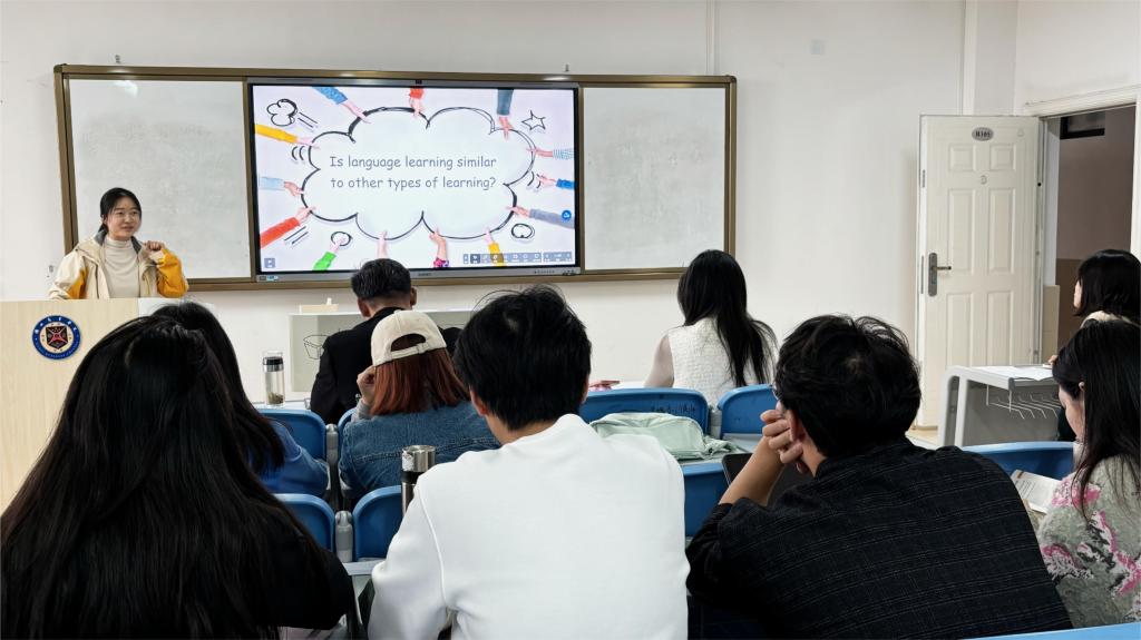 闻心怡老师《第二语言习得与发展》通过问题导入的方式,引导员工对“语言”下定义,进而拓展到相关语言学理论学习中,整个教学过程教态自然流畅、全英文授课,对知识点的难易度把握非常好。