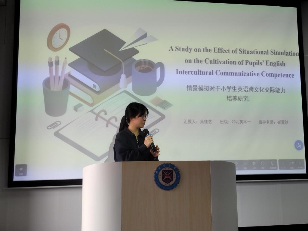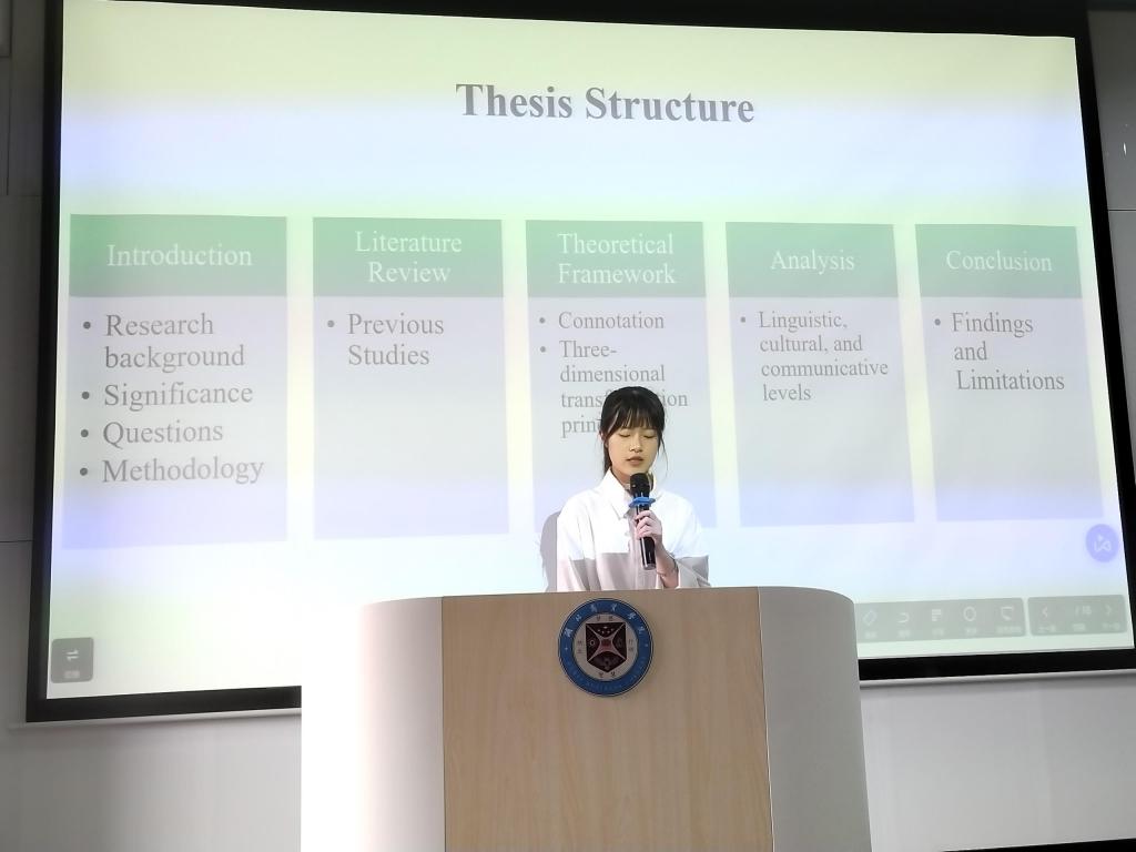 本次公开答辩共有3位同学参加,分别是:20儿英本1班吴佳艺,20外贸本2班罗楠清,20翻译本2班刘添。答辩过程中,3位同学结合PPT依次进行现场陈述,详细介绍论文的选题背景、研究意义、研究思路、主要内容、研究结论和不足之处。答辩小组成员针对论文内容向员工进行提问,员工现场一一回答。