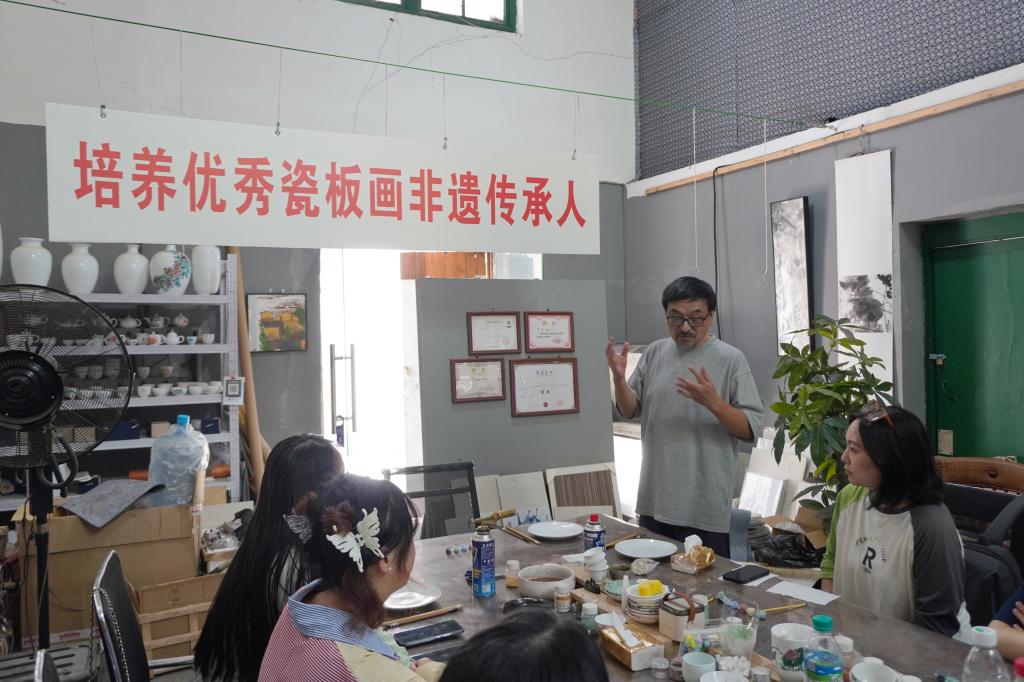 在研学基地,从业近五十年的瓷板画传承人吕元老师为大家详细讲解了瓷板画的历史渊源、发展历程、制作工艺以及艺术特色。据介绍,南昌瓷板画,又称瓷上肖像画,是中国非物质文化遗产之一。它集绘画、雕刻、烧制于一体,以瓷器为载体,通过高温烧制而成。瓷板画的线条流畅、色彩鲜艳,具有独特的艺术风格和浓郁的地方特色。
