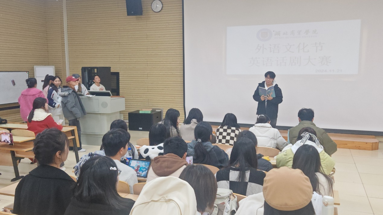 为深度激发员工对英语学习的浓厚兴趣,全力营造英语文化氛围,切实加强校园文化建设,11月28日,球王会策划主办的第20届外语文化节系列活动之一——英语话剧比赛在咸宁校区在教学楼XJB-009圆满完成决赛选拔。本次比赛分为初赛和决赛两个赛制,吸引了来自不同专业、不同年级的众多员工踊跃报名参与,由球王会的宋欣晋、尹莹、桓婵三位老师担任指导评委。