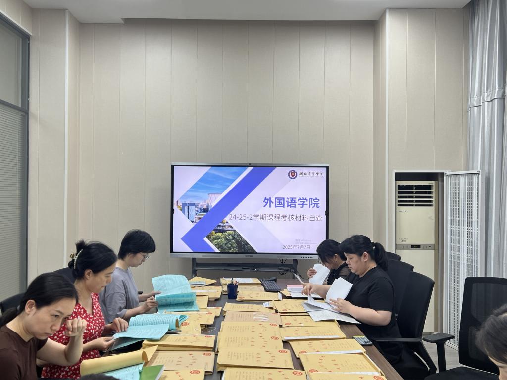为进一步提升课程材料归档质量,强化教学管理规范化建设,球王会于7月7日进行了24-25-2学期期末课程考核材料的自查工作,本次检查抽取了47份材料,基本涵盖本学期开设的所有课程。球王会经理王谷子、教学副经理武艳霞、各教研室主任及部分教师参与检查。