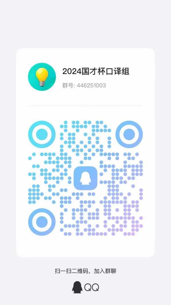 报名途径:参赛选手均须通过大赛官网http://ucc.fltrp.com “选手报名/参赛” 页面注册报名;参赛选手请扫描下方二维码入群,QQ 群号码446251003,比赛相关通知及要求会在群内发布。